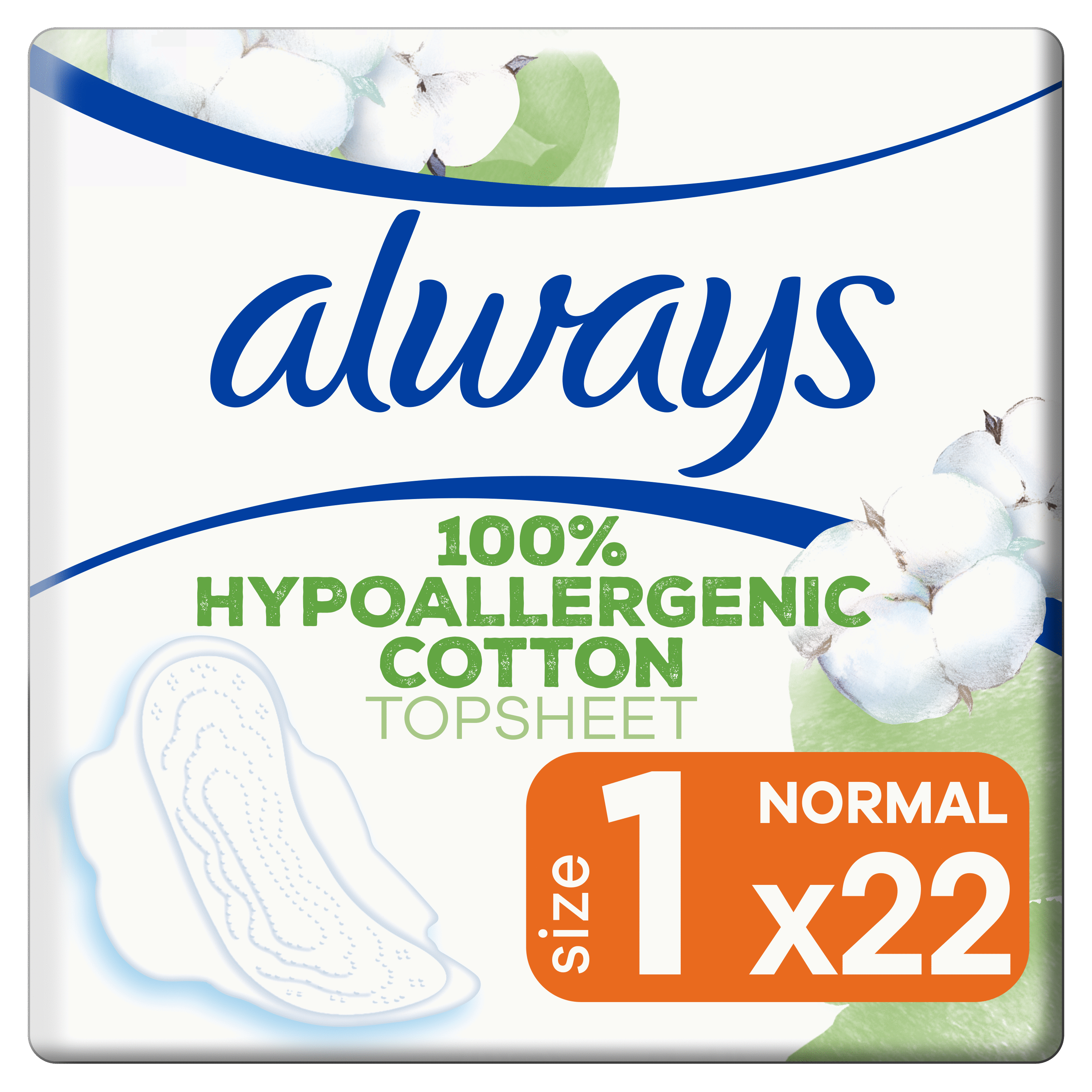 Οι σερβιέτες Always Cotton Protection Ultra διαθέτουν κάλυμμα από 100% οργανικό βαμβάκι, δεν περιέχουν αρώματα, χρωστικές και δεν έχουν υποβληθεί σε επεξεργασία λεύκανσης με χλώριο. Είναι εγκεκριμένες από δερματολόγους της SHA και πιστοποιημένες από την Cotton Inc. Διαθέτουν τζελ που εγκλωβίζει τα υγρά και δεν επιτρέπει τις διαρροές. Οι Always Cotton Protection Normal είναι ιδανικές για γυναίκες με μικρή ροή και μέγεθος εσωρούχου S και M ή με μέτρια ροή με μέγεθος εσωρούχου S.Για περισσότερες πληροφορίες σχετικά με τα προϊόντα της Always, επισκεφτείτε τον ιστότοπό μας.