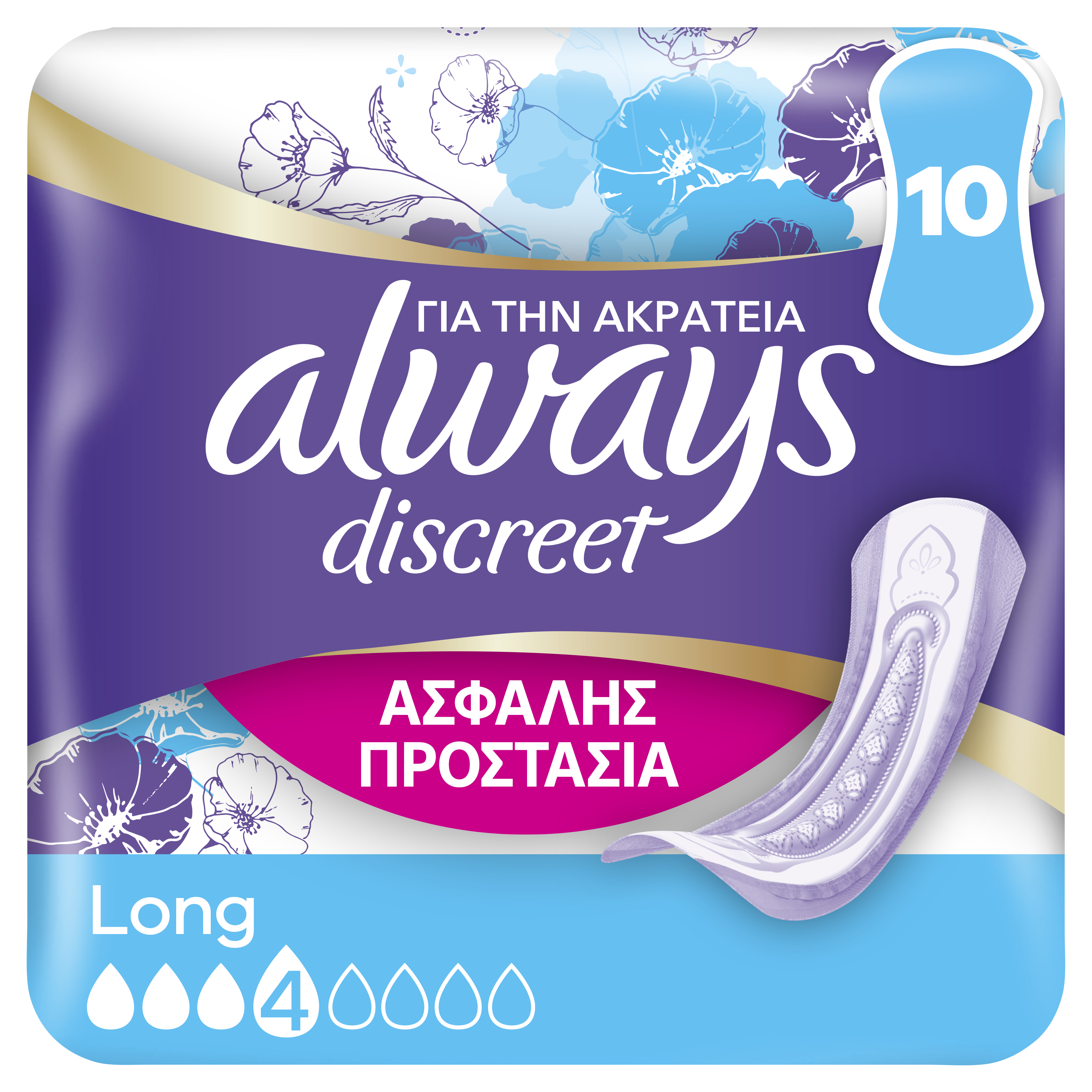 Ιδανικές για πιο έντονες ανάγκες. Οι Always Discreet Σερβιέτες Long για την Ακράτεια είναι εξαιρετικά ασφαλείς και σχεδόν δεν τις αισθάνεσθε. Έχουν σχεδιαστεί ώστε να σας προσφέρουν επιπλέον κάλυψη και προστασία ώστε να πάψετε να ανησυχείτε για διαρροές. Η μοναδική τους δομή προσφέρει ισχυρή προστασία με πολύ λεπτό πυρήνα ώστε να μην έχετε να επιλέξετε μεταξύ της άνεσης και της προστασίας. Αν το φτέρνισμα ή το γέλιο σας προκαλεί διαρροές ουροδόχου κύστης, οι σερβιέτες Always Discreet Plus Long σας προσφέρουν ιδανική προστασία.