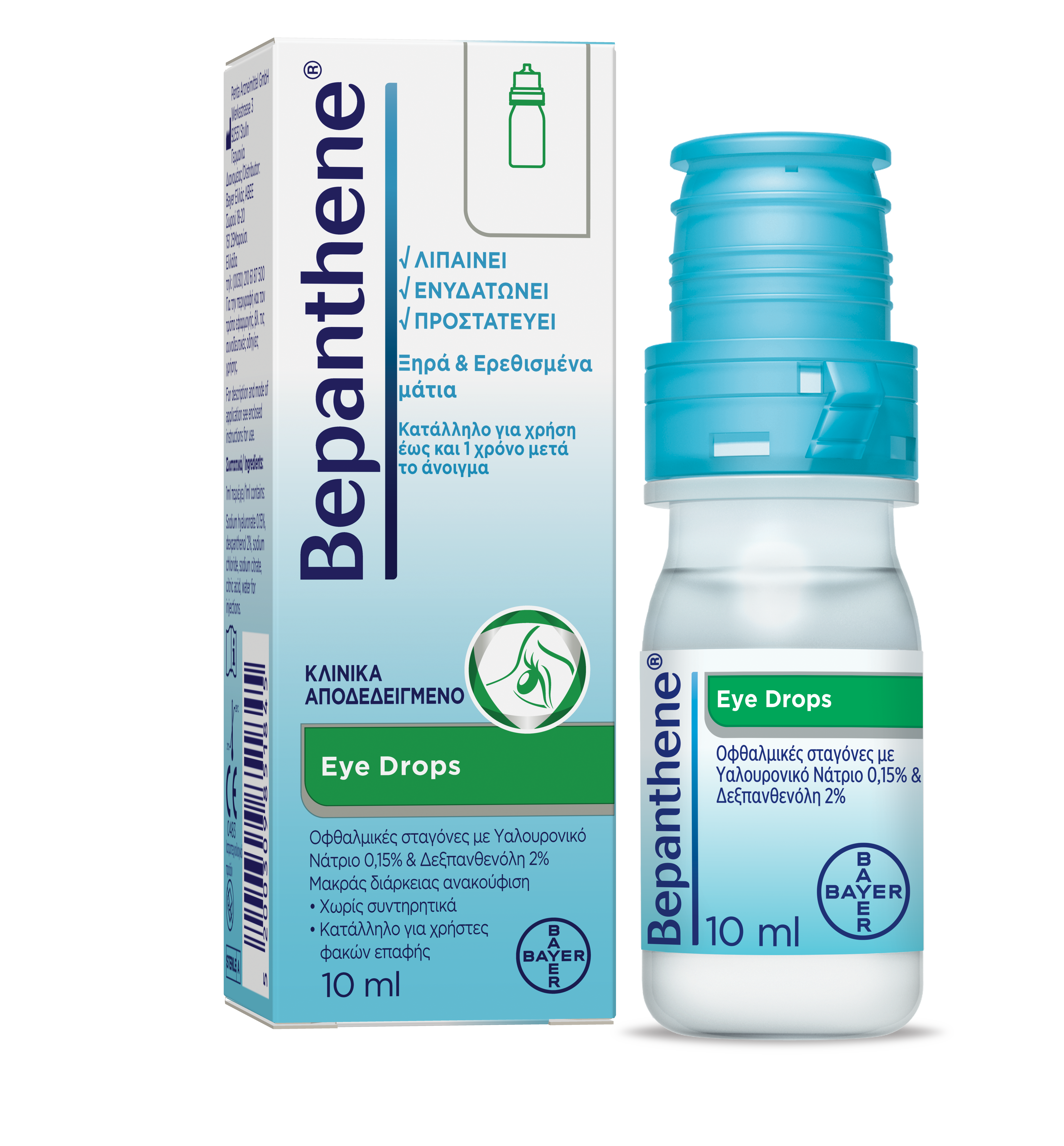 Το Bepanthene® Eye Drops στη συσκευασία του φιαλιδίου είνα κατάλληλο για χρήση έως και 1 χρόνο μετά το πρώτο άνοιγμα. Αυτό το επιτυγχάνει με το ειδικό σύστημα στείρου φίλτρου που είναι ενσωματωμένο στο σταγονόμετρο του φιαλιδίου, το οποίο διατηρεί αποστειρωμένο το προϊόν έως και 1 χρόνο μετά το άνοιγμα του φιαλιδίου χωρίς την χρήση συντηρητικών. Διατίθεται επίσης και σε συσκευασία μονοδόσεων (20 αμπούλες X 0,5ml) Επιπροσθέτως, το Bepanthene® Eye Drops είναι κατάλληλο για: Άτομα που περνούν πολύ χρόνο μπροστά σε οθόνες Χρήστες όλων των τύπων φακών επαφής Ηλικιωμένους Γυναίκες στην εμμηνόπαυση και στην κύηση λόγω ορμονικών διαταραχών Ασθενείς που αντιμετωπίζουν ξηροφθαλμία μετά από εγχείρηση στα μάτια Ξηροφθαλμία που οφείλεται σε χρήση φαρμακευτικής αγωγής