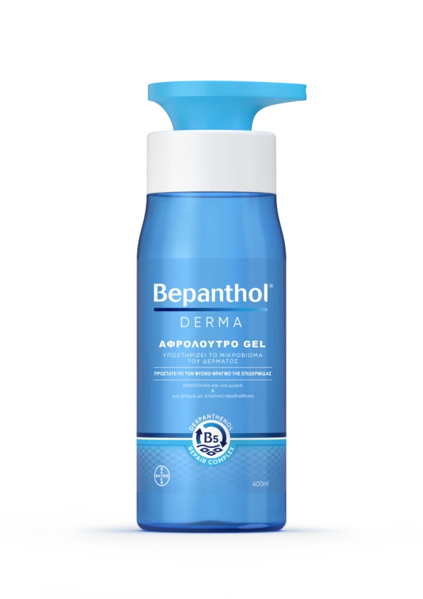 Ενυδατώστε το δέρμα σας και προστατέψτε το από την ξηροδερμία με το Bepanthol® Derma αφρόλουτρο gel για καθημερινό απαλό καθαρισμό σώματος που καθαρίζει απαλά την επιδερμίδα απομακρύνοντας τους ρύπους, διατηρώντας παράλληλα τον φυσικό προστατευτικό της φραγμό και καταπραΰνοντας το ξηρό, κνησμώδες δέρμα μετά από κάθε χρήση.