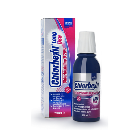 Το Chlorhexil 0,20% Mouthwash – Long Use με περιεκτικότητα σε χλωρεξιδίνη 0.20%, δημιουργήθηκε για τον δραστικό έλεγχο και την εξουδετέρωση των μικροοργανισμών της στοματοφαρυγγικής κοιλότητας, την αποτελεσματική καταπολέμηση της ουλοοδοντικής μικροβιακής πλάκας και την άμεση ανακούφιση και προστασία της στοματικής κοιλότητας από ερεθισμούς και φλεγμονές ιδίως σε περιπτώσεις περιοδοντικής νόσου (περιοδοντίτιδας), φαρυγγίτιδας, αμυγδαλίτιδας κ.α.