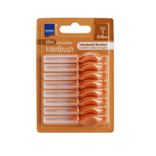 Intermed Ergonomic Mini Μεσοδόντια Βουρτσάκια με Λαβή Size 1 - 0.45mm Πορτοκαλί, 8τεμ
