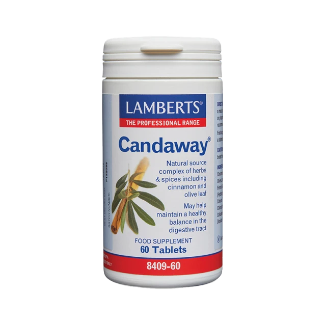 Το Candaway αποτελεί μια μοναδική υψηλής ισχύος φόρμουλα που περιέχει φλούδα από κανέλα σε συνδυασμό με φύλλα ελιάς και ρίγανη. Στην Lamberts όταν χρησιμοποιούμε βότανα και μπαχαρικά σε φόρμουλες, προσέχουμε πάντα να χρησιμοποιούμε τα σωστά μπαχαρικά και το κατάλληλο μέρος του φυτού. Για το λόγο αυτό, προτιμήσαμε να χρησιμοποιήσουμε τη φλούδα της κανέλας και όχι το λάδι της, καθώς είναι αυτό που χρησιμοποιείται σε δημοσιευμένες κλινικές μελέτες. Όπως όλα τα σκευάσματα της Lamberts, παρασκευάζεται εντός του Ηνωμένου Βασιλείου σύμφωνα με τα αυστηρά πρότυπα της Φαρμακευτικής GMP (Pharmaceutical GMP).