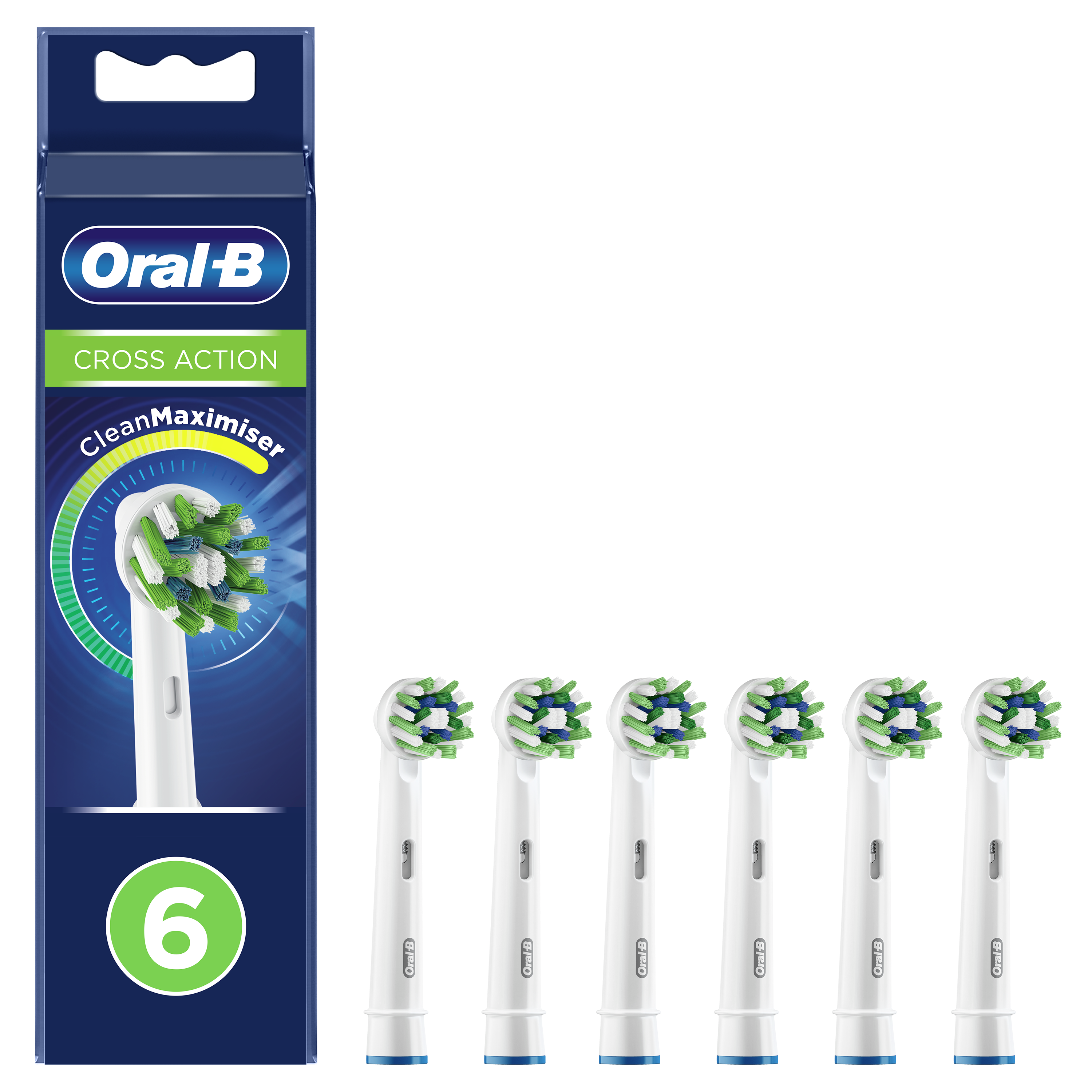 Ως μία από τις κορυφαίες κεφαλές βουρτσίσματος Oral-B, η CrossAction διαθέτει ίνες σε γωνία με κλίση ακριβώς 16 μοιρών και απομακρύνει έως και 100% περισσότερη πλάκα σε σχέση με μια απλή χειροκίνητη οδοντόβουρτσα. Οι βελτιωμένες κεφαλές βουρτσίσματος CrossAction της Oral-B έχουν κατασκευαστεί με την τεχνολογία CleanMaximiser που κάνει τις πράσινες ίνες κίτρινες για βέλτιστη απόδοση. Οι μοναδικά σχεδιασμένες ίνες φτάνουν βαθιά ανάμεσα στα δόντια για να απομακρύνουν την πλάκα και να αφήσουν ολόκληρη τη στοματική κοιλότητα πιο καθαρή σε σχέση με μια απλή χειροκίνητη οδοντόβουρτσα. Συμβατή με όλες τις λαβές Oral-B εκτός των Pulsonic & iO.
