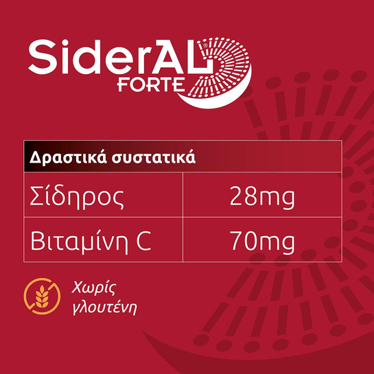 To SiderAL® Forte περιέχει εκτός από τον σίδηρο και βιταμίνη C, η οποία είναι πολύτιμο συστατικό για τον ανθρώπινο οργανισμό γιατί συμμετέχει σε πολλές μεταβολικές λειτουργίες όπως η διατήρηση της σταθερότητας των αιμοφόρων αγγείων, ο μεταβολισμός των αμινοξέων κ.α. Επιπλέον, η βιταμίνη C έχει ιδιαίτερη σημασία για τα άτομα που παρουσιάζουν έλλειψη σιδήρου γιατί συμμετέχει στη διαδικασία σχηματισμού της αίμης, που είναι βασικό συστατικό της αιμοσφαιρίνης.